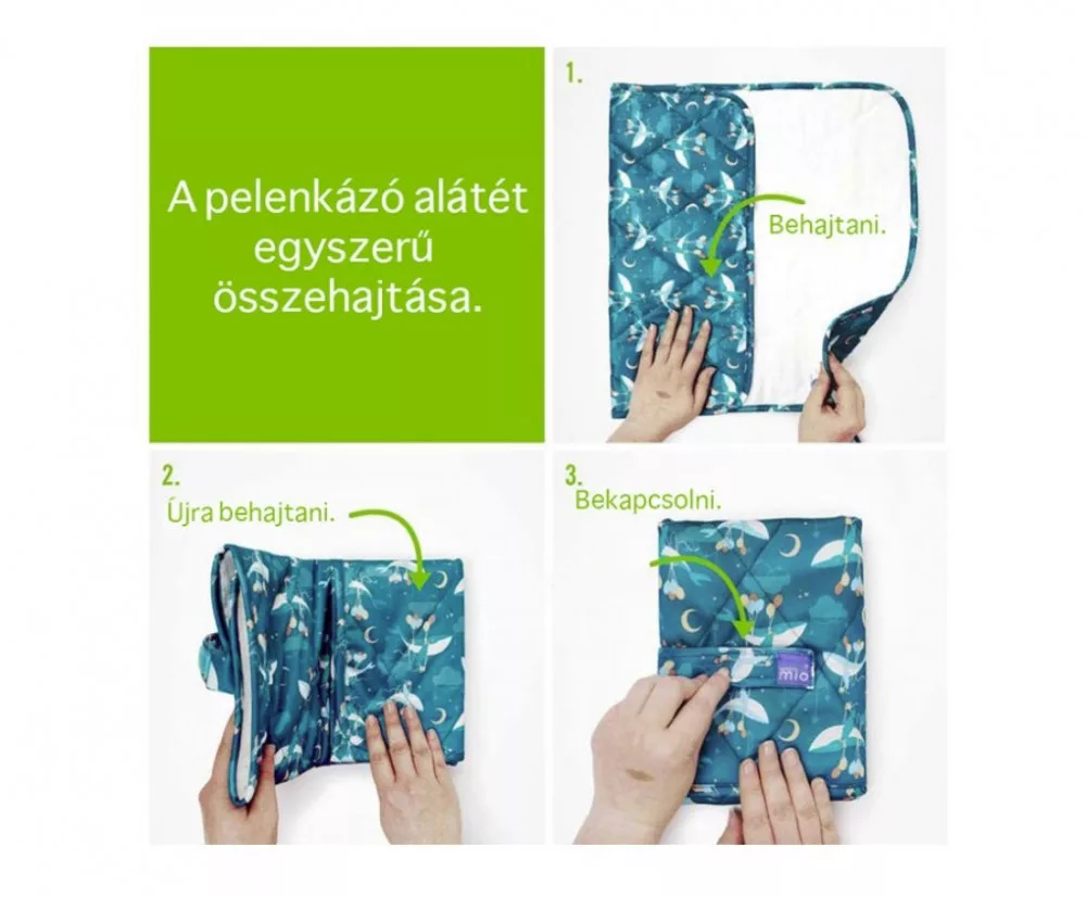 Ügyesen összehajtható, könnyű, kompakt és könnyen belefér a pelenkázó táskába. Használata egyszerű, csak összehajtja és tépőzárral lezárja. A puha steppelt anyag kényelmet biztosít a kisbaba számára.