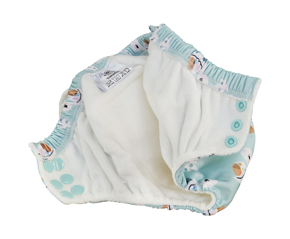 Nagyon egyszerűen fel- és lehúzható, és kényelmes viselet. Belül puha bambusz frottír, ami ha nedves is, nem tapad a bőrhöz. A belsejében van egy zseb, ahová akár pelenkabetétet lehet helyezni. Így a nadrág tökéletesen igazítható minden gyermek igényeihez. Akár éjszakára is.