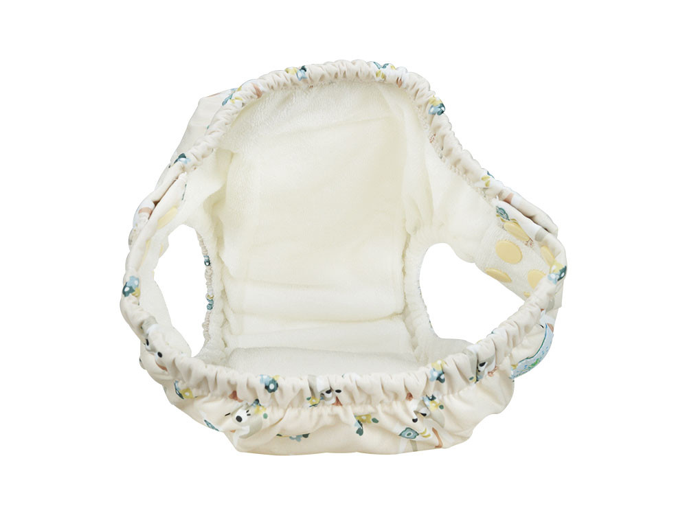 Nagyon egyszerűen fel- és lehúzható, és kényelmes viselet. Belül puha bambusz frottír, ami ha nedves is, nem tapad a bőrhöz. A belsejében van egy zseb, ahová pelenkabetétet lehet helyezni. Így a nadrág tökéletesen igazítható minden gyermek igényeihez.