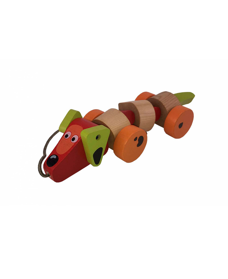 A tacskó fejleszti a gyerekek mozgékonyságát, és a megfigyelő készséget is, a Húzható fa tacskó kutya szabadban, és szobában is használható.