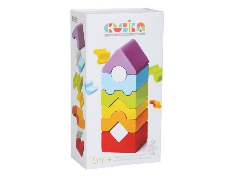 Építs fel egy színes tornyot fa építőelemekből! A Toronyépítő színes fa építőelemekből áll, amiket egymásra lehet pakolni. Minden fakocka más mintázatú, ezért csak egyféleképpen lehet összerakni, ha sikerül, a végeredmény egy magas és színes torony lesz!