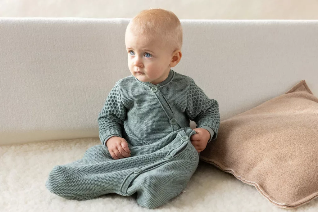 • Hosszú ujjú, kényelmes és puha, gyapjú kötött alvózsák.