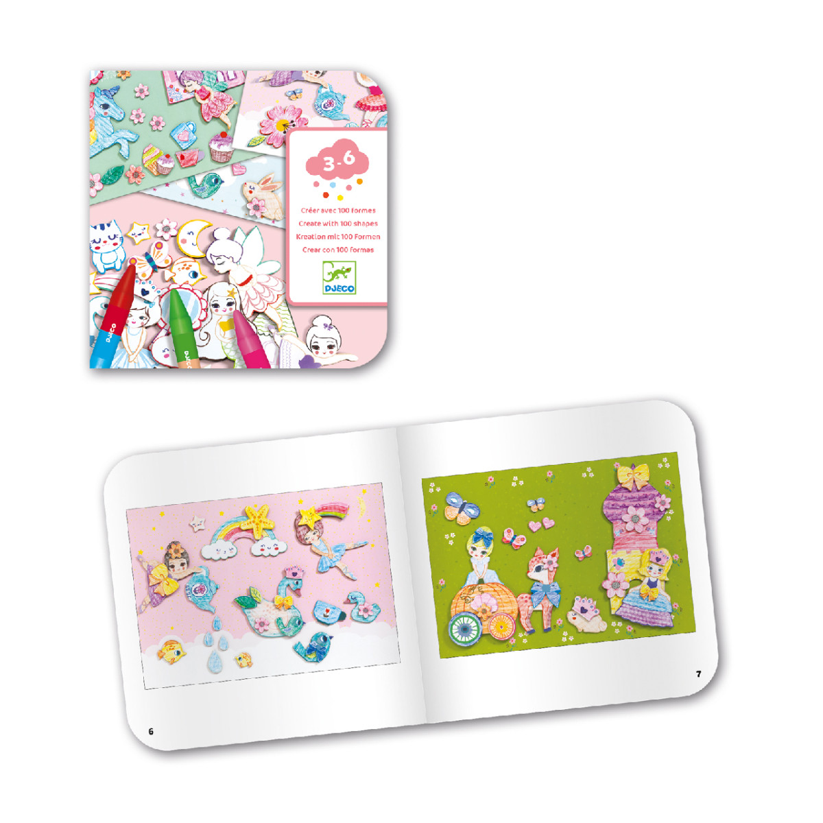 'A teremtendő világ' elnevezésű sorozat, Lánykák, és "pillangók, madarak" része ez a készlet. A színes grafikai alapon különböző alakok, formák helyezhetőek el, kedvesek, tréfásak, izgalmasak!