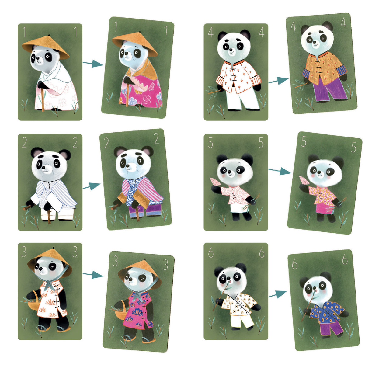 Az előrerajzolt kártyákat ki lehet színezni az útmutatóban megadott lépések szerint, de természetesen teljesen szabadon is fel lehet ruházni színekkel a 7 család minden rajzfigura tagját. Lehet alkotni szabályt hozzá, de a legegyszerübb a "egyet húz, egyet dob" alap, amit 7 kezdőlappal kezdve, össze lehet gyűjteni egy kiválasztott család minden tagját. Érdekes, mókás és sokatmondó lehet, ha a gyermek a saját családtagjainak a különböző állatfigura családokból választ megjelenítő kártyát. Ha pl. Pandát választ apa-kártyának, tigris meg anya-kártyája, ki hordja abban a családban a kalapot? Milyen állatfigurák testesítik meg a gyerekeket? Nem csak móka, nem csak nevetés, ad esetleg elgondolkodni valót is, a tréfás "saját család" kirakás.