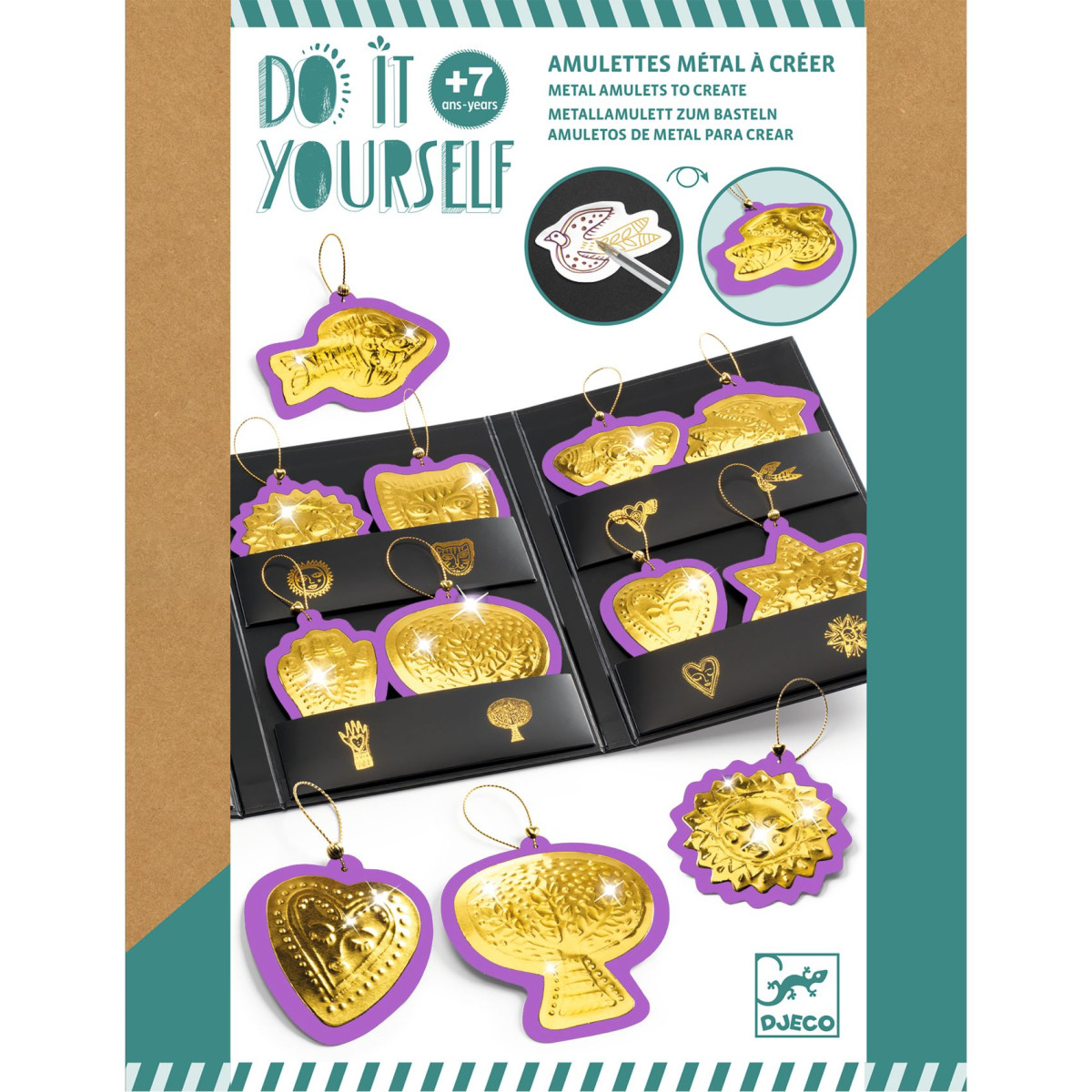 Egyszerűen, rávasalással készíthetőek a fémhatású amulettek. A kész talizmánok csinos fémes borítású tárolótasakban őrizhetőek.