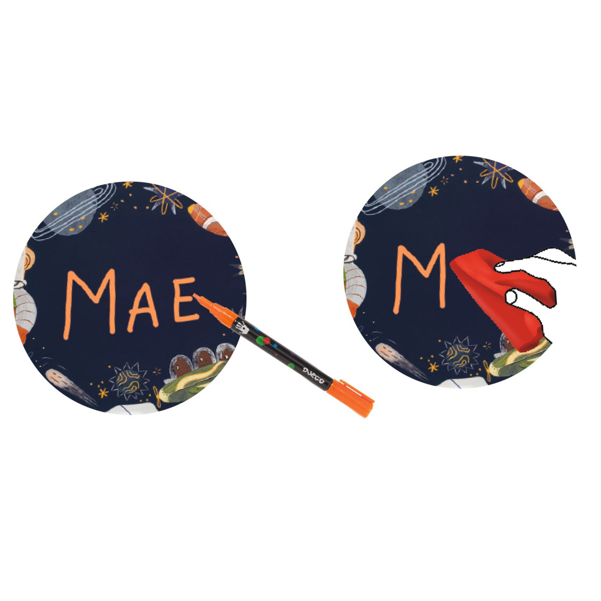 Kreatív készlet egy szép, újrarajzolható táblával, hogy az érdeklődő gyermek a világűr témájában alkothasson. A gyerekek a vastag habszivacs matricák segítségével ragasztják fel az illusztrációkat a félmerev rudakra, majd összeszerelik a csillagokat, bolygókat, üstökösöket a táblán, amely így egy csinos, újrarendezhető, dekoratív művé alakul át. Ez egy eredeti termék, amely a újra írható tábla praktikumán alapul, és a térbebeli megjelenítést esztétikus tárggyá teszi.