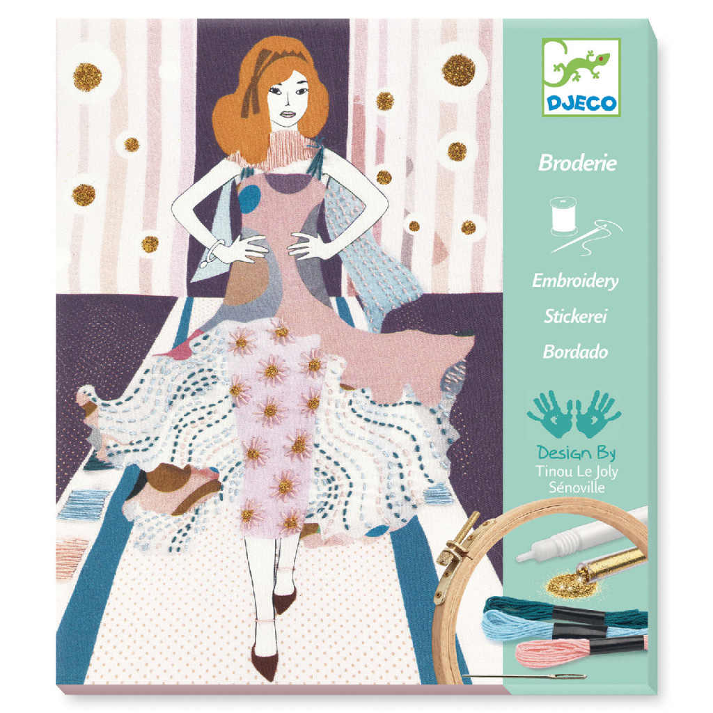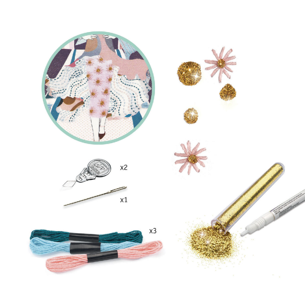 Ez a készlet vonzó alkalmat kínál a kreatív hímzéshez, díszítéshez: a divat szerelmesei színes fonalakkal varrhatnak mintákat, és csillámporral díszíthetik az elegáns, előre nyomtatott estélyi ruhát.
