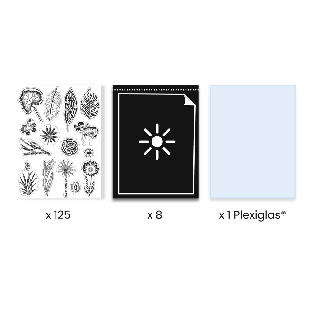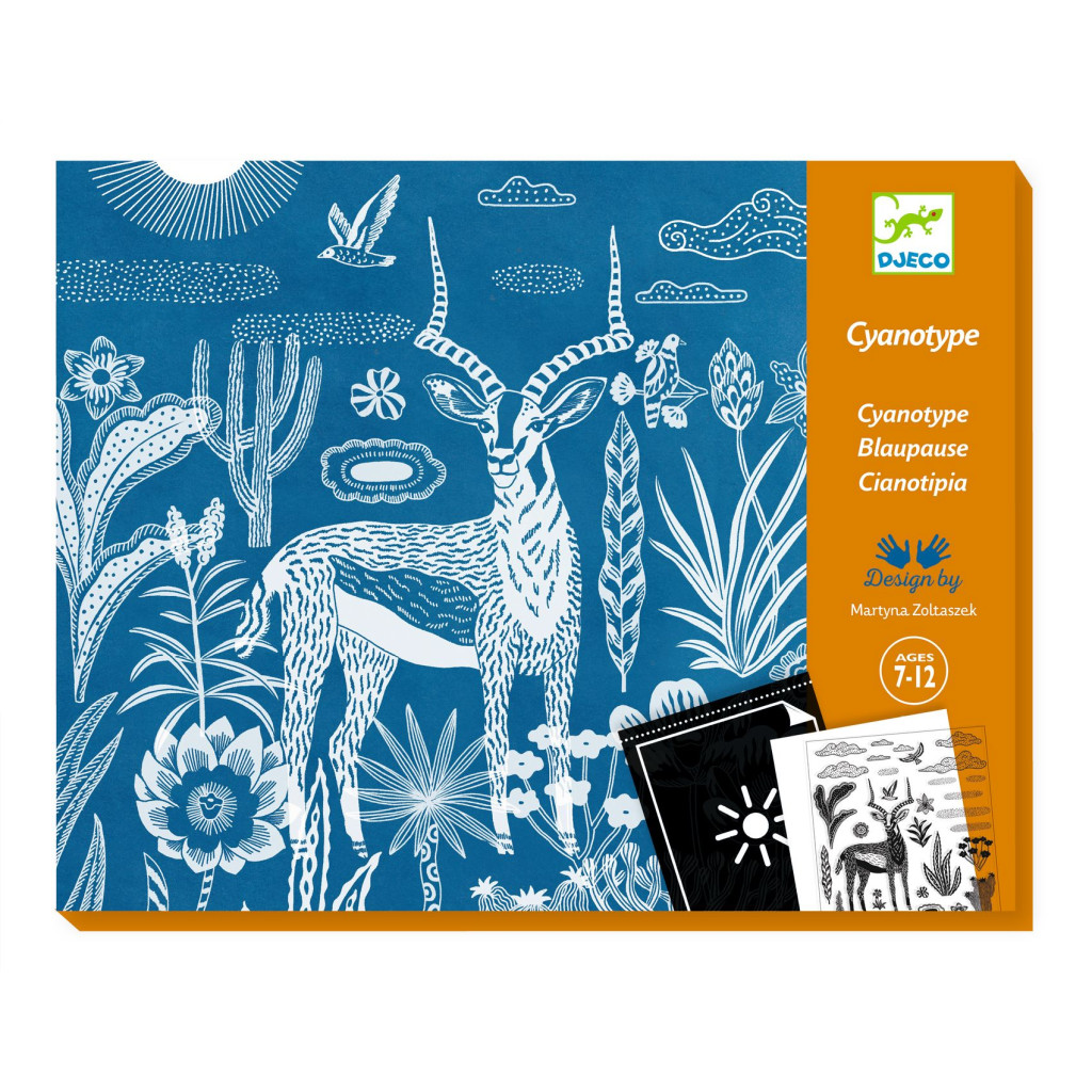 Az Éjszakai szavanna kreatív szett elhozza gyermeked számára a művészet és a tudomány izgalmas találkozását a cianotípia technika segítségével. Ez az egyedülálló fotográfiai eljárás napfény hatására kelti életre a képeket, mindenféle vegyi anyag használata nélkül. A fényérzékeny papíron elrendezett, átlátszatlan Rhodoid motívumokkal a gyermek saját jelenetet alkothat. A napfényben való megvilágítás után a képet vízbe kell meríteni, és így születik meg a csodás, mélykék árnyalatú műalkotás.