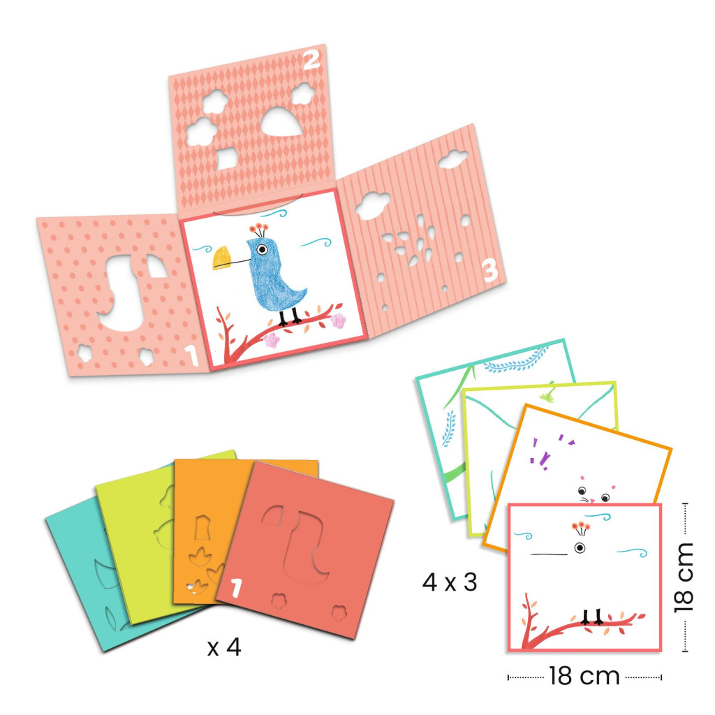 Ezt az állatos sablonkészletet az teszi különlegessé, hogy segítségével a rajzot 4 lépésből kell / lehet megalkotni, így az állatok részletgazdagabb mintázatot, kiegészítőket kapnak. A sablonok helyes használata (először az 1. utána 2....és így tovább) segíti a sorrendiség kialakítását a gyerekeknél.