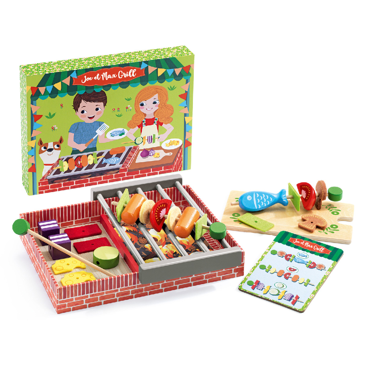 Fantasztikusan hasonlít ez játék a valódi, igazi kerti grillre. Itt, ezzel a gyermek játszhat a tűzzel, mert a kellékek doboza egy plusz grillráccsal grilltűzhelyé alakul. Ennél biztonságosebb grillsütő jelenleg nincs kicsi gyermekek számára! Mehetnek a rácsra a grillnyársak, az apa receptje szerint összerakott hozzávalókkal. Lehet sütni a rablóhúst nyárson, sokszor megforgatva a parázs felett. Minden hozzávaló a készletben van: a húsimitációtól a zöldségekig.