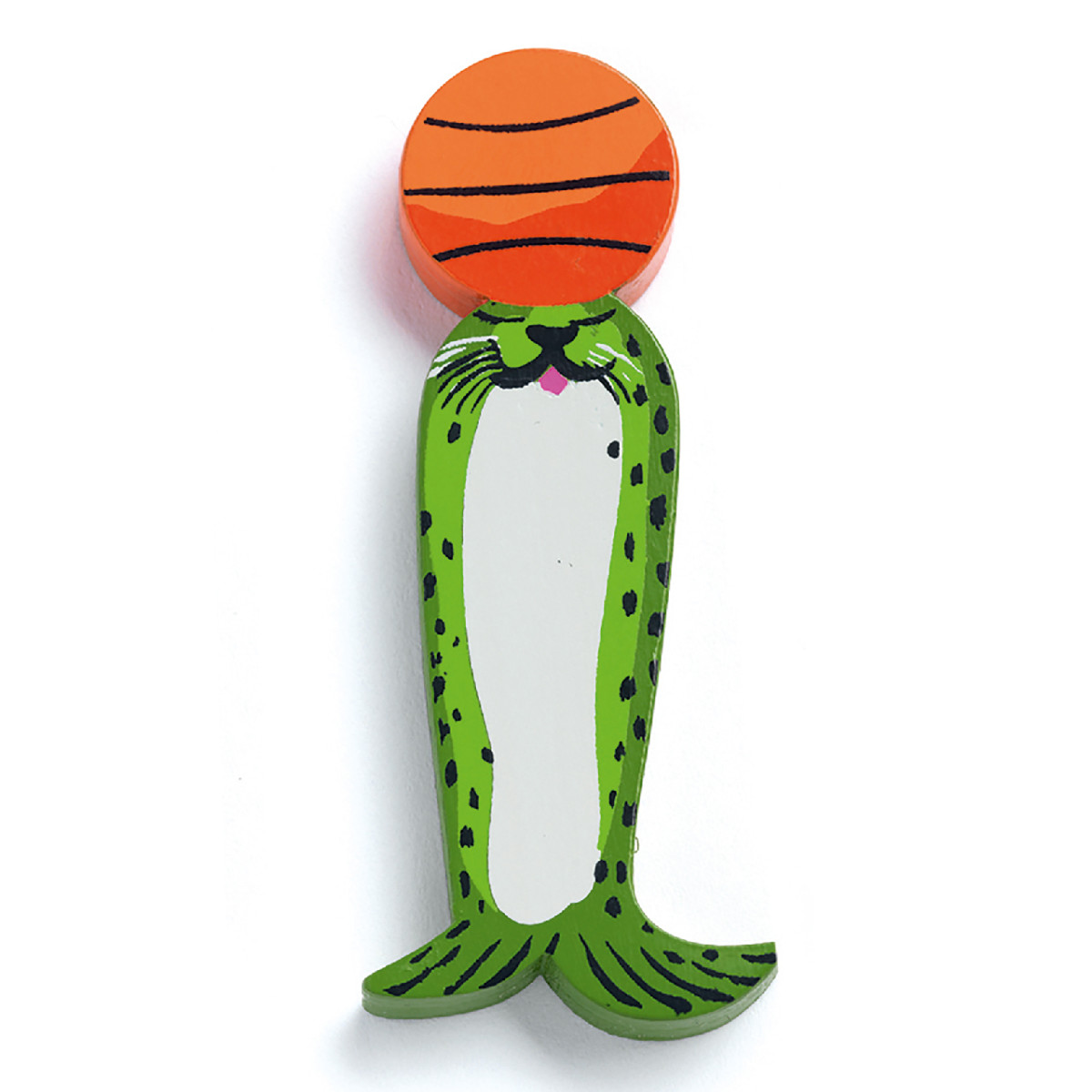 A fából kivágott betű formákat minimális grafikai részletekkel tették a Djeco grafikusai állatokra asszociáltató színes betűkké.