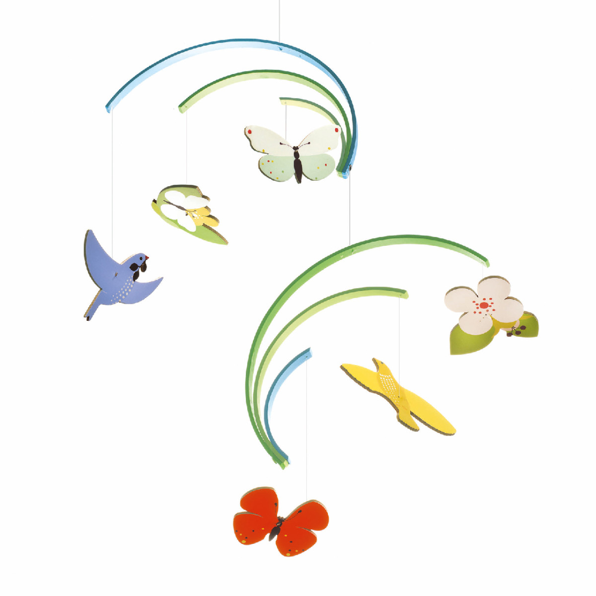 A gyerekszoba figyelemfelkeltő dekorálására akár a kiságy fölé. A légáramlatok által mozgatott formákra irányul a kisgyermek figyelme. Ezáltal fejlődik a szemmozgása és a környezet felfogása.