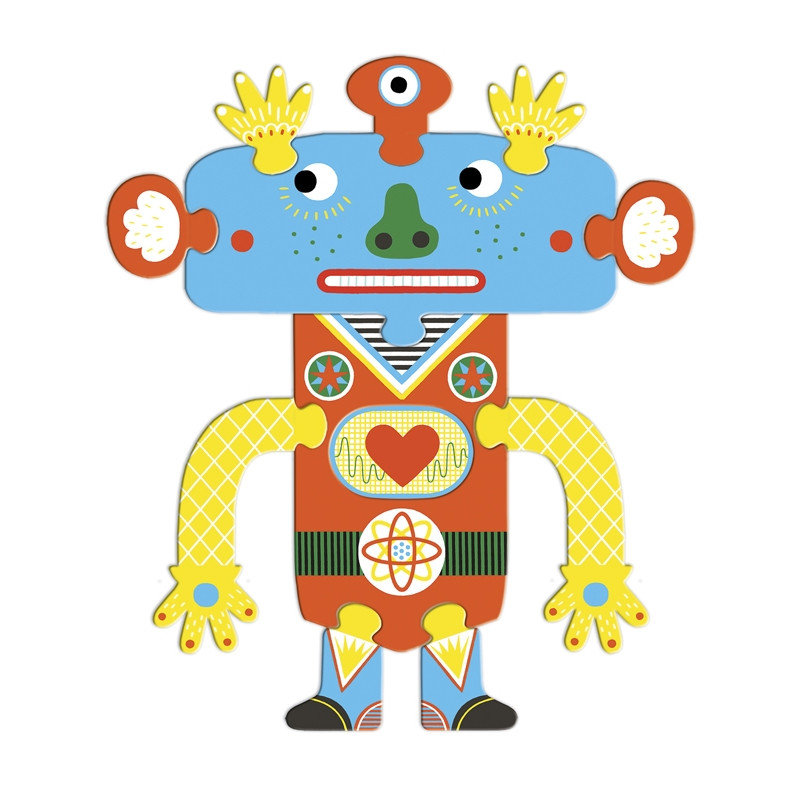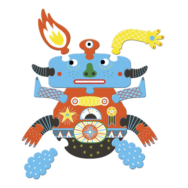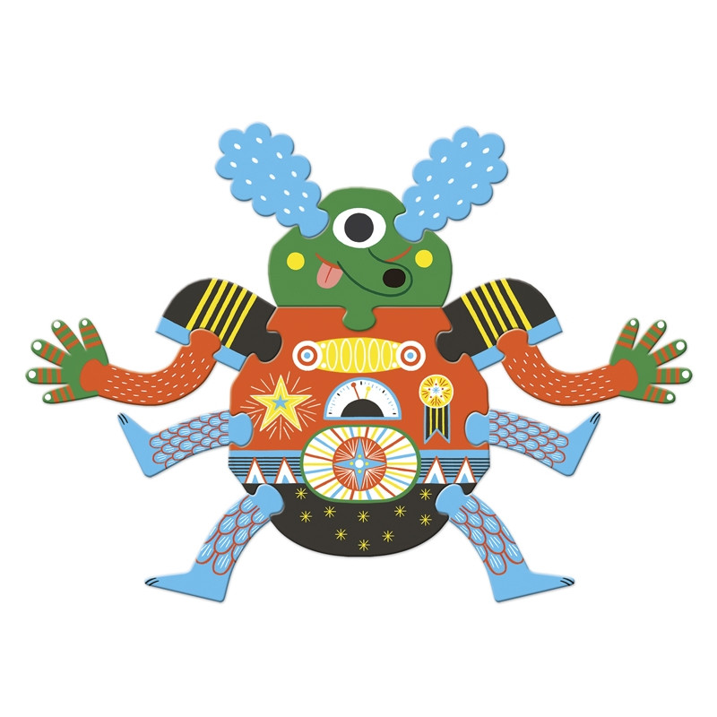 A 39 darabból álló puzzle kreatív képkirakást tesz lehetővé. Nagyokat lehet nevetni azon, hogy mit hová helyez az ezzel szórakozó gyermek, vagy felnőtt. Újabbnál-újabb szörnyikéket lehet megalkotni a Djeco új sorozatában megjelent "Crazy puzzle"-ből.