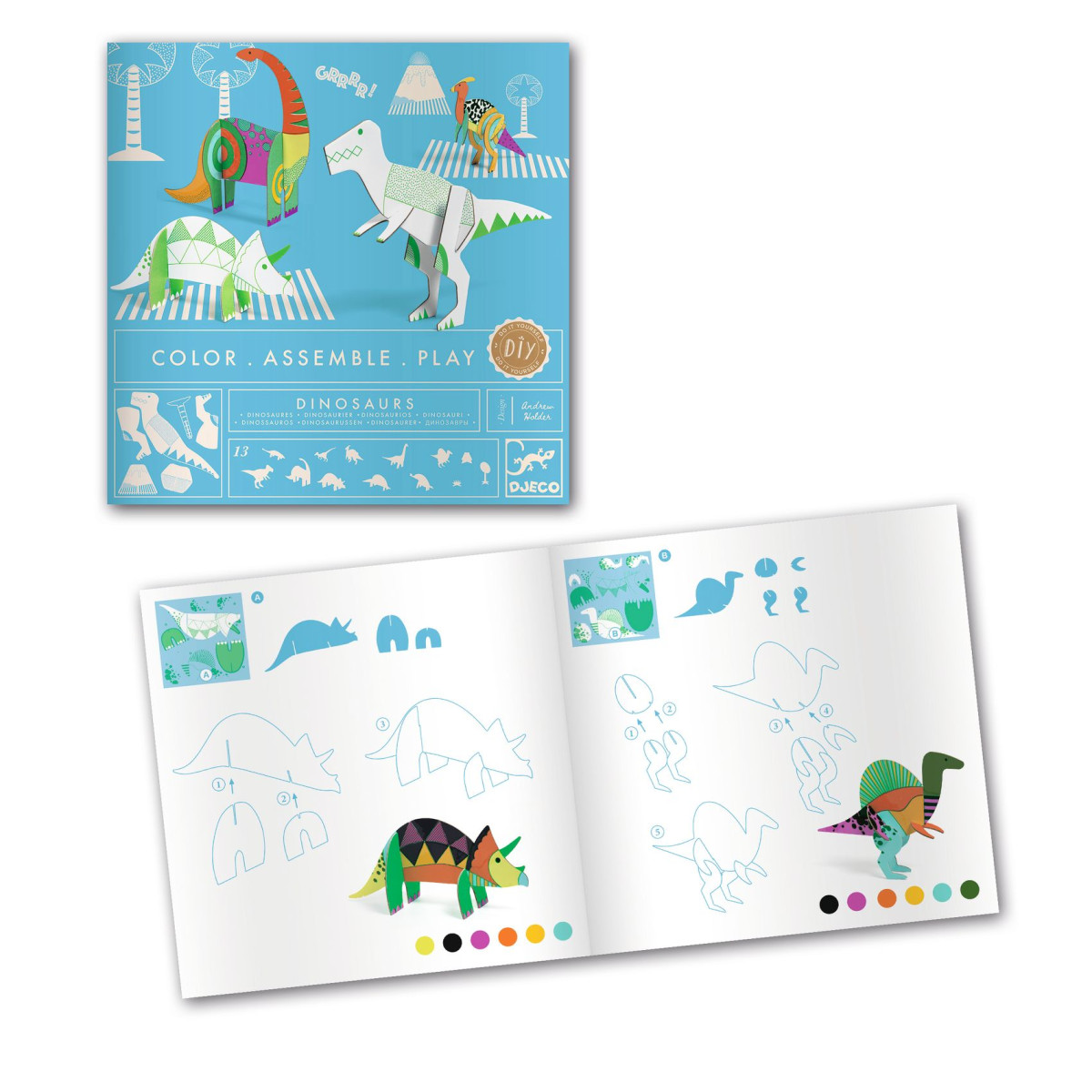 Ha szereted a dínók világát, igazán örömteli időtöltés lesz elkészítened saját dínóid ezzel a kreatív készlettel, melyben rendegeteg kartondarabot lehet kiszínezni és összerakni. Színezz, ragassz, alkoss és érezd jól magad, miközben elkészülnek a várva várt figurák. Minden összerakott elemmel lehet játszani és mesés történeteket kitalálni!