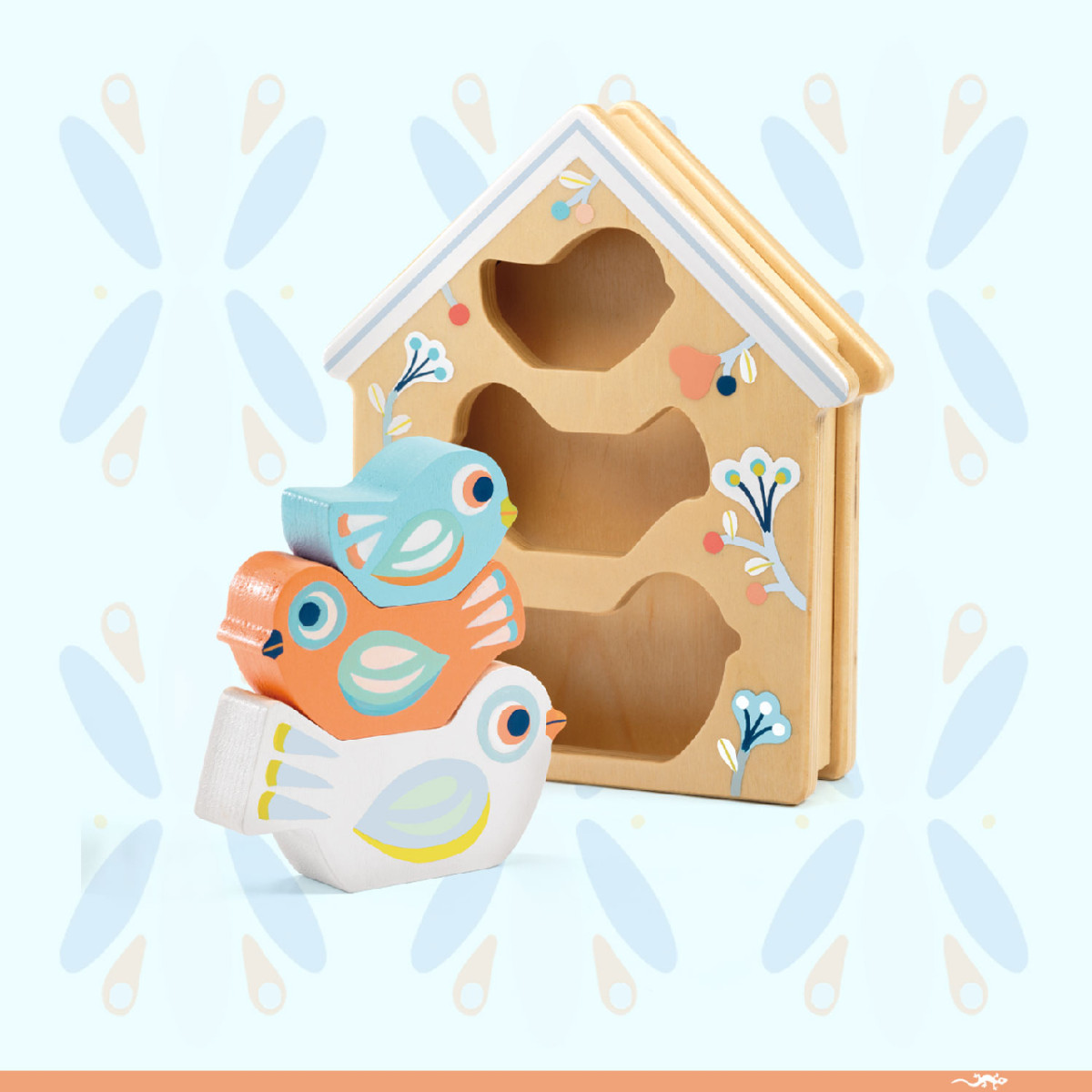Ez a kis vidám játék könnyedén fejleszti a picik érzékelését. A madarak nagysága érzékelteti a méretbeli különbségeket, illetve az irányokat is ismerteti a kicsikkel.