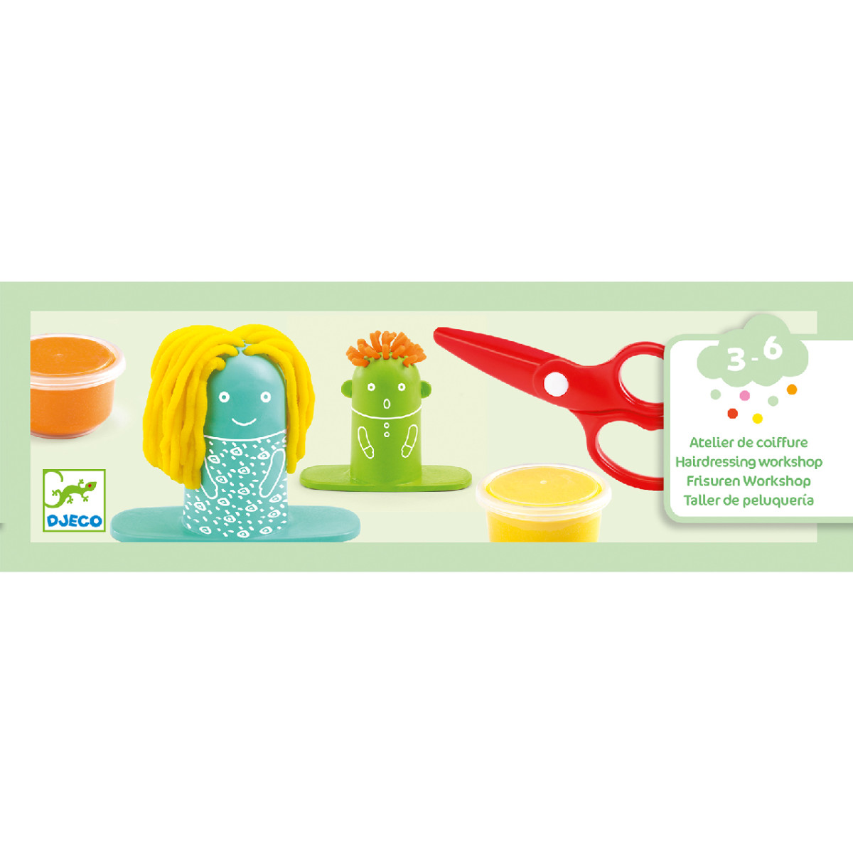 Eredeti és vicces gyurmázási tevékenység. Bele kell tenni a gyurmát a műanyag figurákba, ráhelyezni a az alapra és megnyomni: így nő ki a haja :) Ezután az ollóval lehet nyírni, frizurára vágni. Semmi baj, ha ügyetlen a fodrász, ezeknek az alakoknak egy gombnyomásra újra kinő a haja!