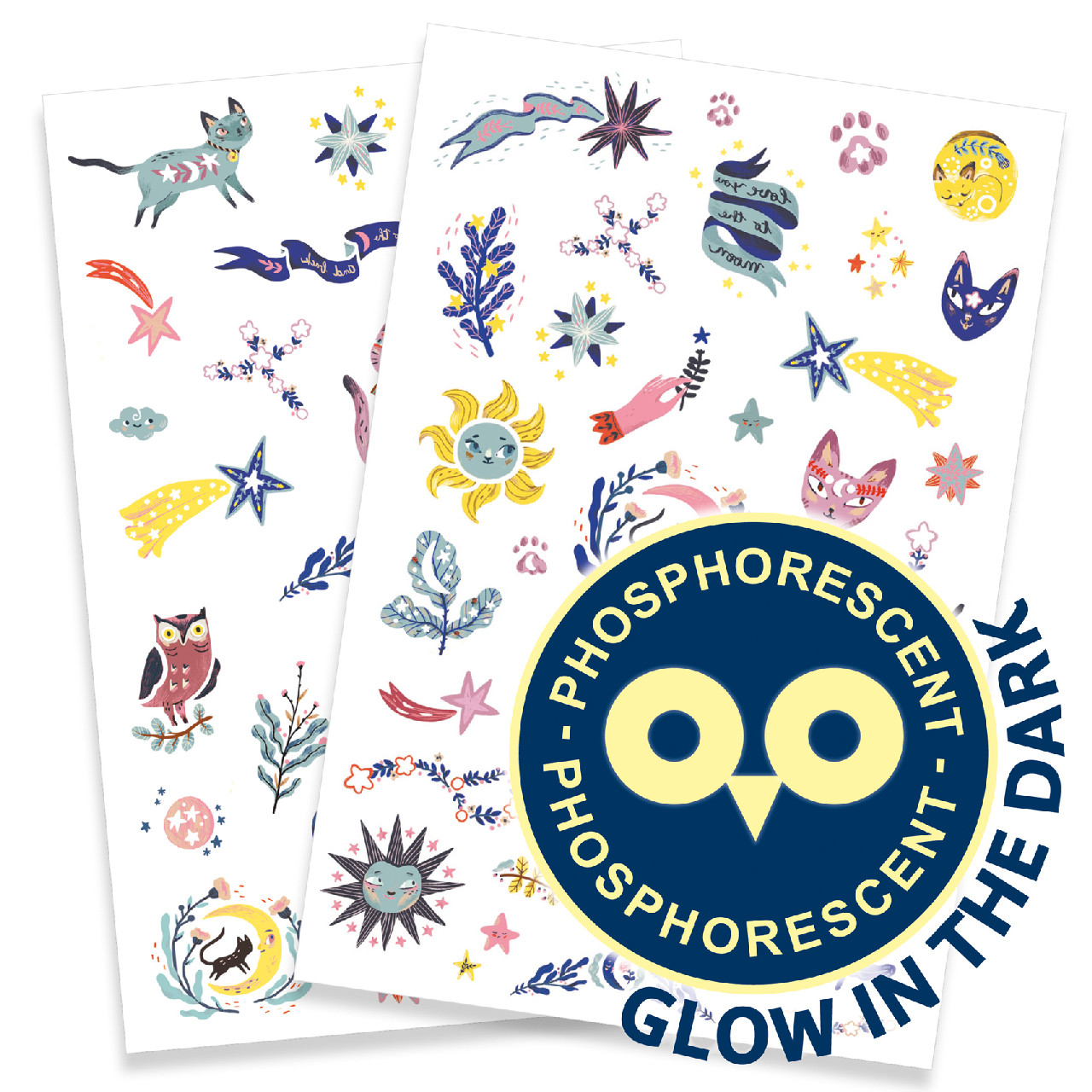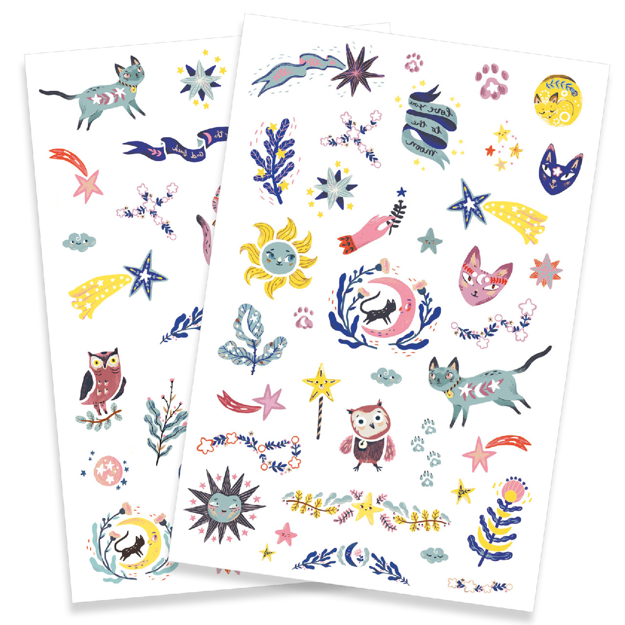 A Djeco tetováló matricák bevizezés nélkül, azonnal felragadnak a bőrre!