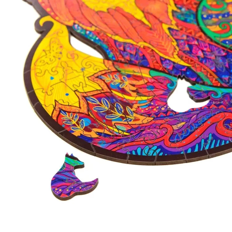 A lézervágott technológiával készült rókaformájú fa puzzle szemet gyönyörködtető és összetett szerkezetet kínál, melyet apró állatfigurák és növényformák tesznek egyedülállóvá. A puzzle minden darabja színesre festett, ami élénk és vonzó megjelenést kölcsönöz neki.