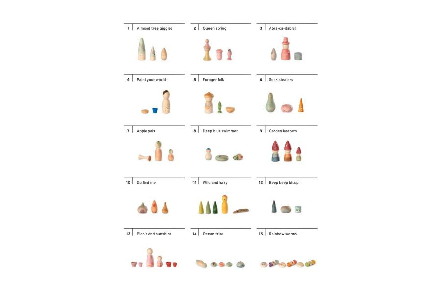 15 különböző zsákbamacska, mindegyik külön kis dobozba rejtve – tele örömmel, játékossággal és felfedeznivalóval. Gyűjthetők, cserélhetők, megoszthatók, vagy akár továbbadhatók – ahogy csak szeretnétek! Minden doboz egy apró kaland: egy kis titok, ami csak kibontásra vár, és egy új kis világ, amely a képzeletet hívja játszani.