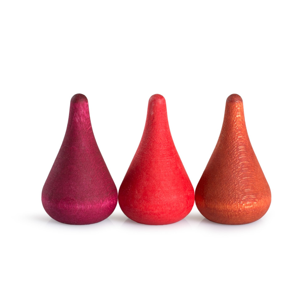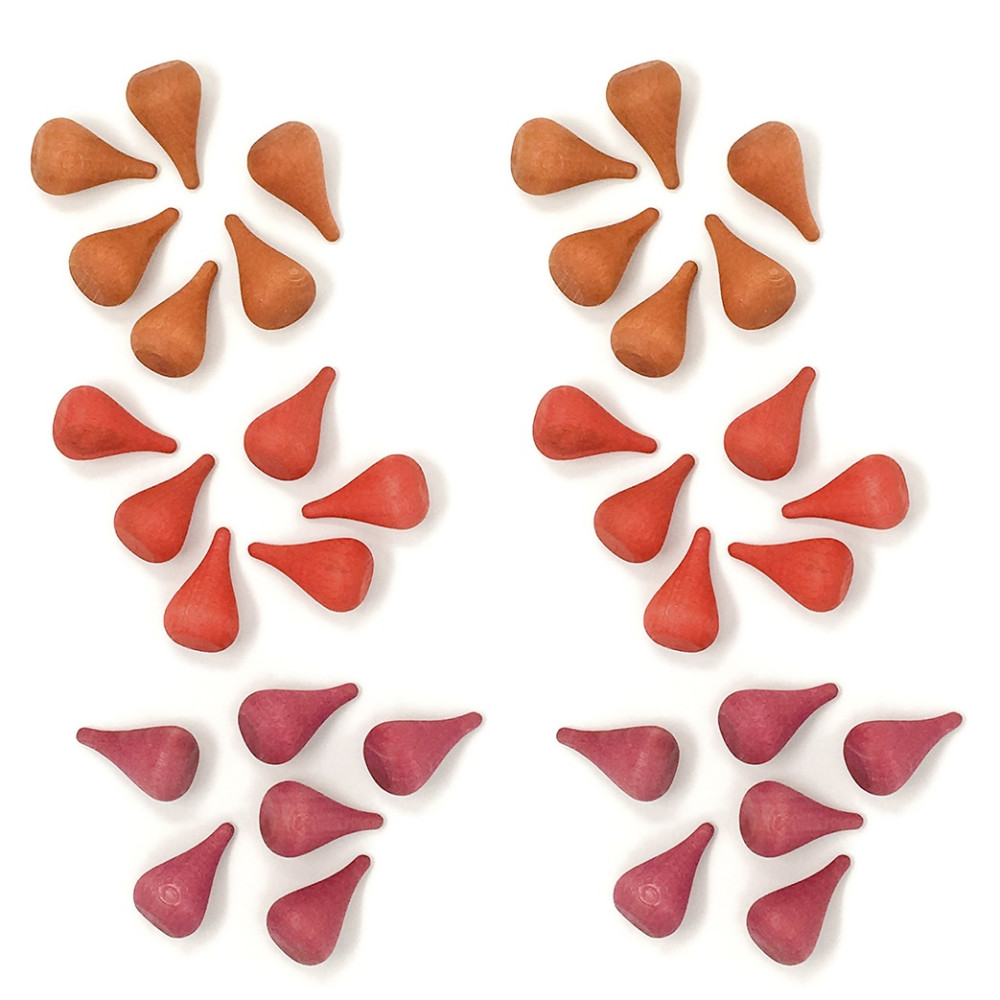 Grapat tűz mandala szett, 36 fa elemet tartalmazó fajáték készlet. Elemei 3,2 cm magasak, a vörös és narancs árnyalataiban.