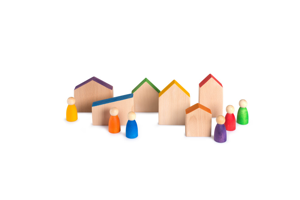 Szimbolikus játéknak is tekinthető, amely során történeteket és kis külön világokat teremthetnek a gyerekek és persze mi is akár a meséhez illesztve. A házak a bábuk színeit viselik, a szivárvány színeiben gyönyörködhetnek a gyerekek általuk. Egyszerű és természetes, színes kis városkát teremthetünk belőlük. A gyerekek igen meglepő kis világokat alkotnak vele, csodálatos nyílt végű fajáték.