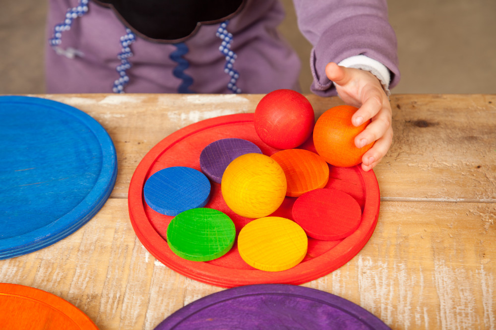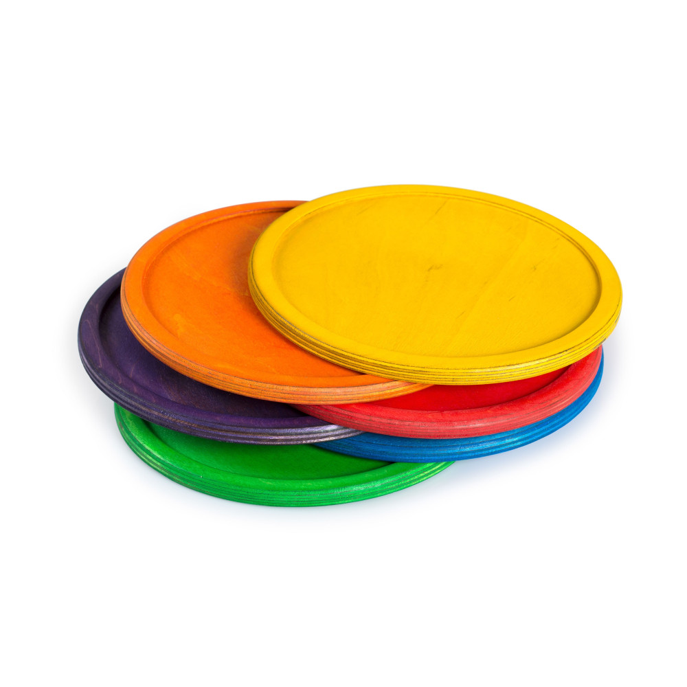 A Grapat szivárvány tányérok - 6 darab 18 cm átmérőjű színes fa tányérka.