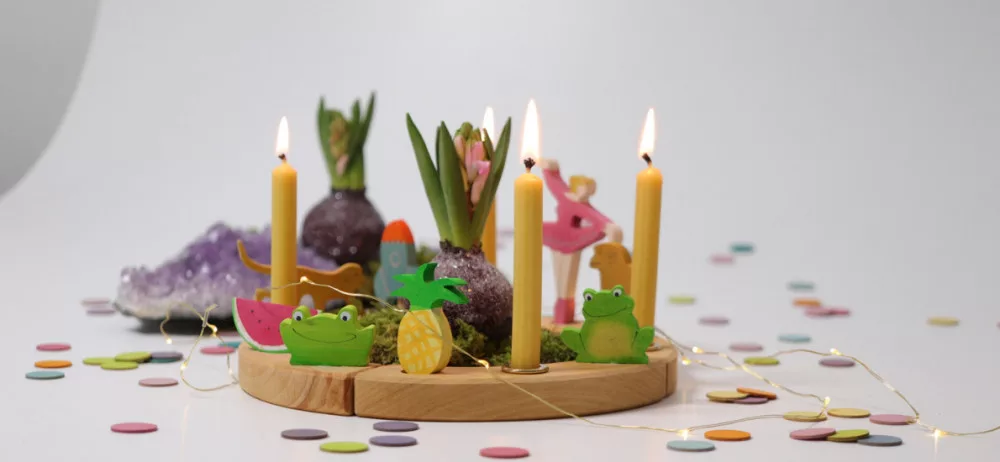 Születésnapi fa gyűrűbe való festett fa gyertya, ünnepléshez, alkalomra vagy az asztalt dekorálni, kellemes hangulatot teremteni. Kombináld ezt a kedves figurát további kézműves Grimm's dekorációs elemekkel, hogy otthonossá tedd velük a környezeted!