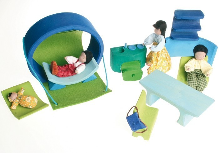 Grimm's hordozható babaház, zöld-kék