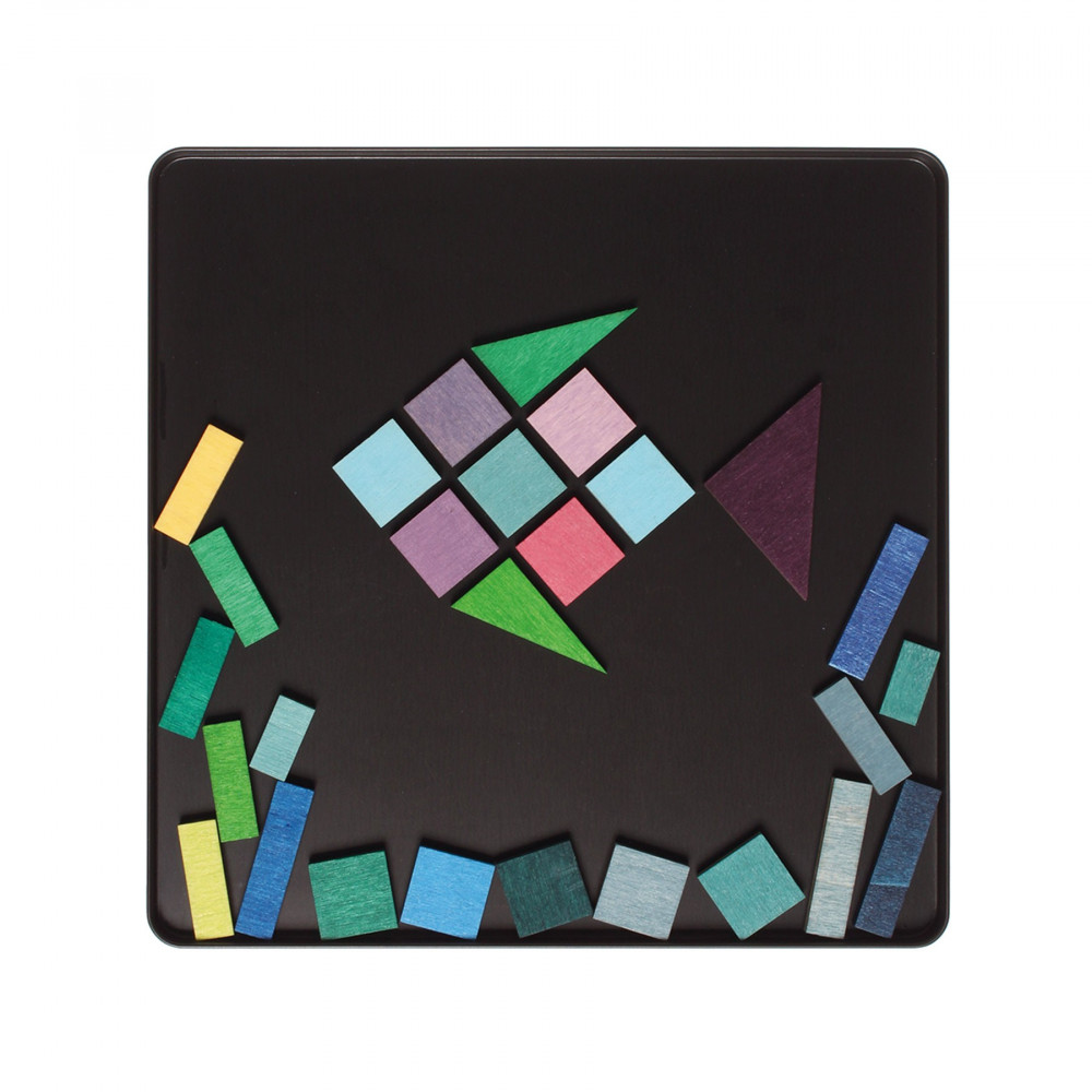 A kirakó darabkái a csodásan élénk Grimm's színekre, kézzel vannak festve. Minden darab fából készül. A mágnesek geometriai formákat mintáznak, Te pedig bármilyen alakzatot, formát vagy képet kirakhatsz belőlük, akár a doboz hátuljáról is meríthetsz ötleteket! A különféle Grimm's mágneses kirakók kombinálhatók is egymással. Ha az alkotásodnak nagy teret szeretnél, ajánljuk a GRIMM'S MÁGNESTÁBLÁT!