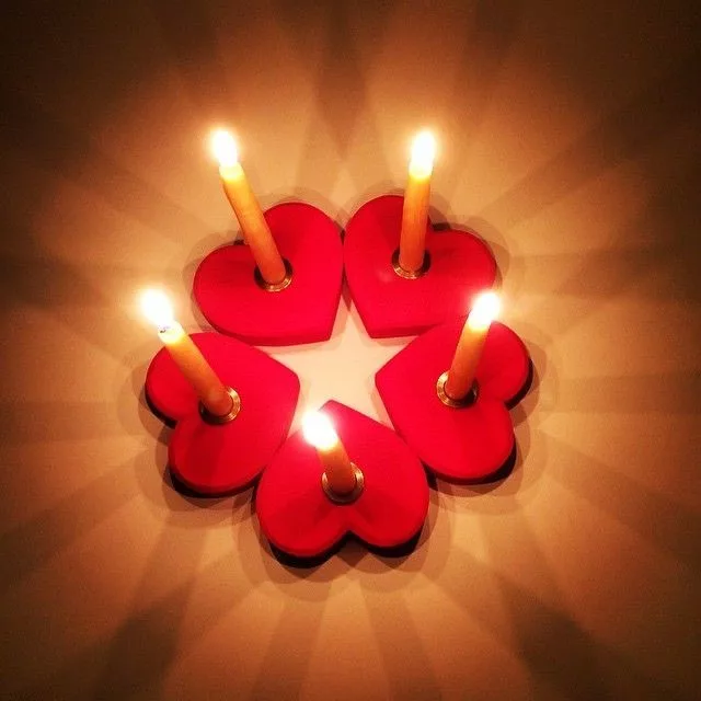 A piros szívbe helyezhetsz festett FA GYERTYÁT, továbbá ajánljuk hozzá a beleillő kis kerámia VÁZÁT, amibe igazi virágokat is tehetsz! Tehetsz bele MÉHVIASZ GYERTYÁT gyertyát, a biztonságért pedig tégy a gyertya alá sárgaréz vagy alumínium GYERTYAVÉDŐT.