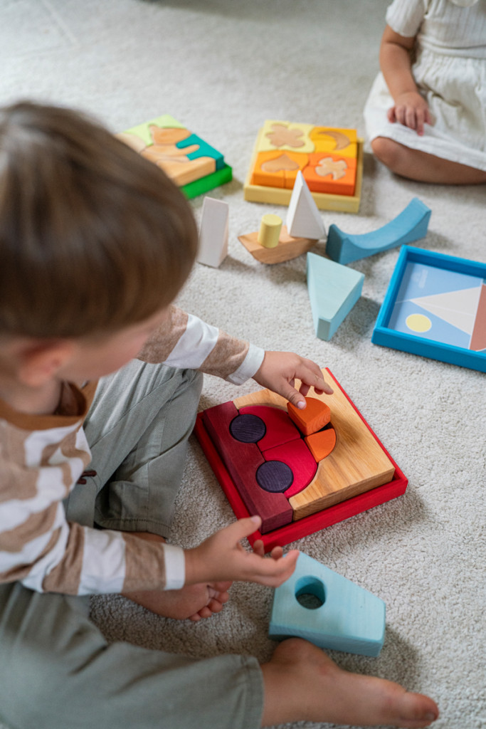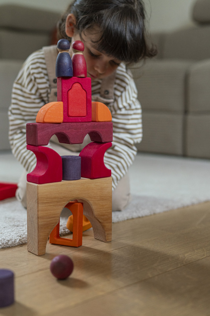 A Grimm’s piros építőkészlet a piros szín erejét és energiáját jeleníti meg, amely a mozgás és az önbizalom szimbóluma. A nagy méretű fa elemeket kifejezetten kisgyermekek számára tervezték, hogy biztonságosan és könnyen megfoghatók legyenek. A készlet a Grimm’s színes építősorozatának egyik tagja, amely a színek hatását és egymáshoz való viszonyát segít megismerni. A különböző formák és árnyalatok kombinálásával a gyerekek játékosan fedezik fel a térbeli összefüggéseket és a színek harmóniáját. A természetes faanyag és a letisztult forma a nyugodt, szabad játékélményt támogatja. Ideális alap a nyíltvégű, kreatív építőjátékokhoz.