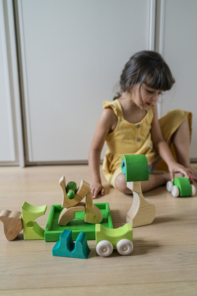 A Grimm’s Green építőkészlet a zöld szín különböző árnyalatain keresztül vezeti be a gyerekeket a természet világába. A nagy méretű fa elemeket kifejezetten kisgyermekek számára tervezték, hogy biztonságosan és könnyen megfoghatók legyenek. A készlet a Grimm’s színes építősorozatának egyik tagja, amely a színek hatását és egymáshoz való viszonyát segít megismerni. A különböző formák és árnyalatok kombinálásával a gyerekek játékosan fedezik fel a térbeli összefüggéseket és a színek harmóniáját. A természetes faanyag és a letisztult forma a nyugodt, szabad játékélményt támogatja. Ideális alap a nyíltvégű, kreatív építőjátékokhoz.