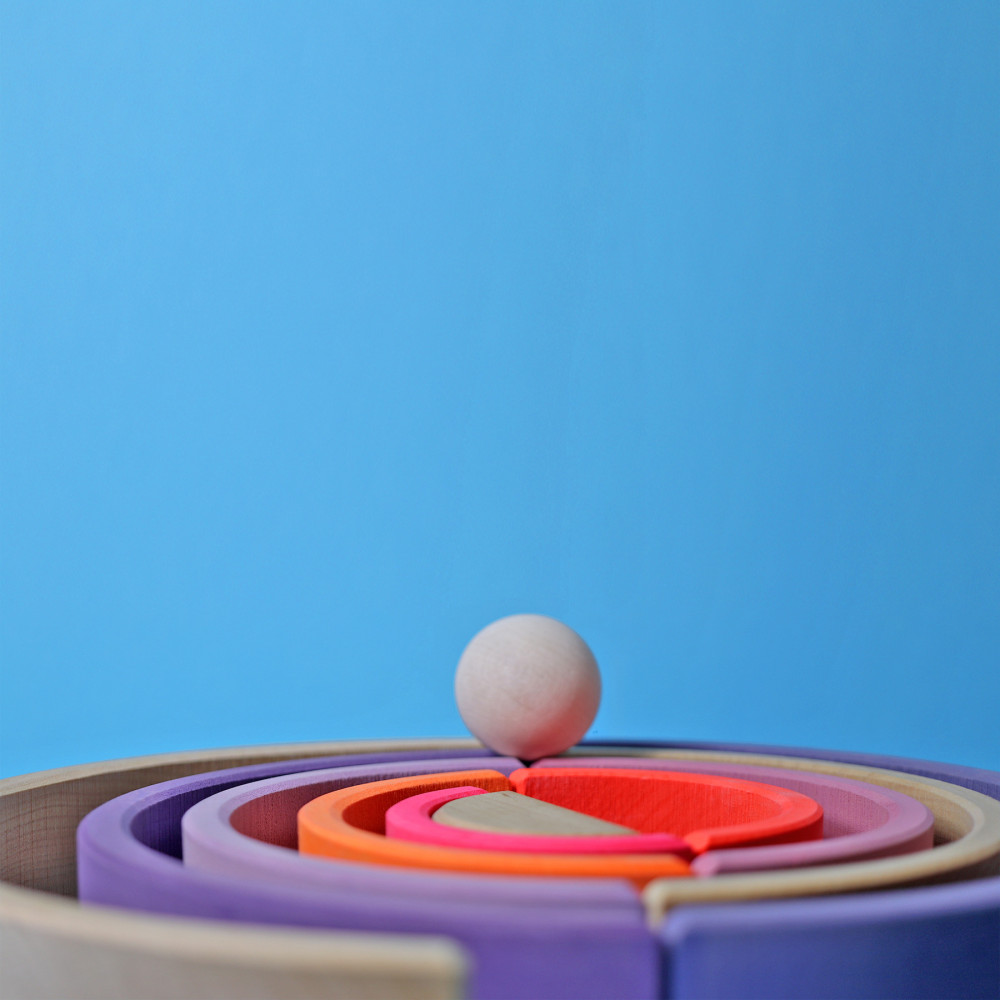 Ez a NEON sorozathoz rendelt szivárvány építő 10 részből áll, csodás szivárvány ívek a színek varázslatával! Nyílt végű játék, így sosem vezet egyetlen jó megoldás felé, hanem a sokrétű érzékelés és számtalan kombinációval való ismerkedés által a gondolkodásmód fejlesztése a célja.