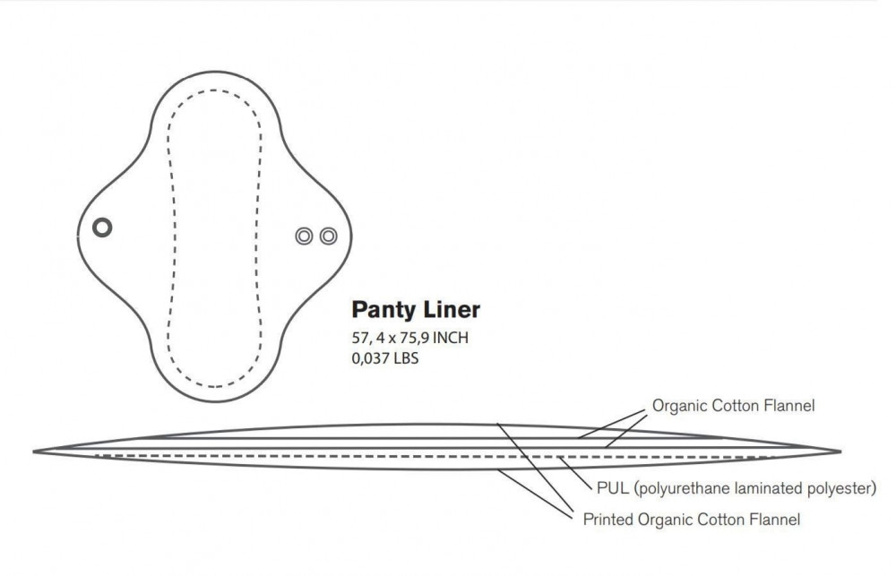A menstruációs betét a szárnyakon lévő patentokkal záródik. A betétek anyaga 100% biopamut, így a puha anyag miatt kellemes viseletet biztosít ezeken a napokon. A betétek a megfelelő komfortérzet és a szivárgásmentesség érdekében PUL vízhatlan, légáteresztő réteggel vannak ellátva. A mosható betétek használatával nemcsak a saját komfortérzetedért, hanem a környezetedért is sokat tehetsz, az egyszer használatos műanyag termékek helyett válaszd a többször felhasználható, mosható alternatívákat.