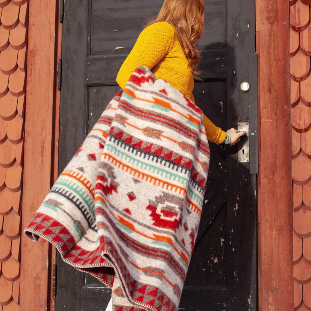 Our classic, tightly jacquard woven wool blankets in 100% lambs wool are as beautiful on the front as they are on their mirrored back. In later years we have also had the opportunity to make blankets in ecologic lambs wool. The ecologic lambs wool is totally free of pesticides and no chemicals or antibiotics has been used in the breeding of the lambs.