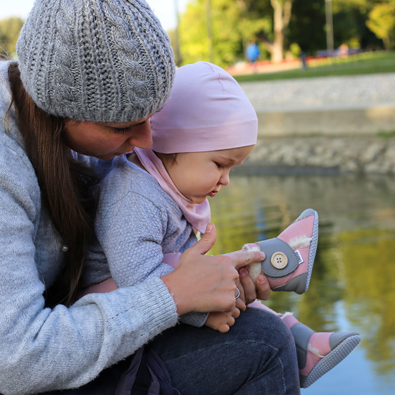 Kétféle külső talppal készülnek: a klasszikus bőrtalpas modellek puha, bababarát nappa bőrből, míg a tappancsos változatok csúszásmentes, légáteresztő talppal rendelkeznek, amely növeli a biztonságot csúszós felületeken. Mindkét változat tökéletes benti és száraz kültéri használatra, a különbség elsősorban a kopásállóságban és csúszásmentességben mutatkozik meg.