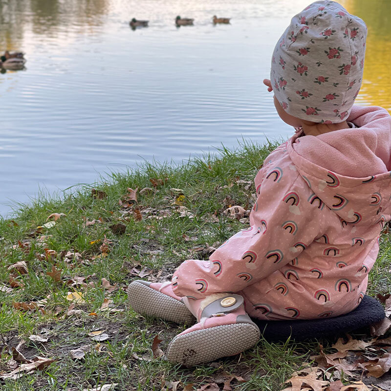 A csecsemők lábát kis puha zsírpárnák borítják és szinte teljesen boltozat nélküliek, így a talp és boka körüli izmok megerősödéséhez a rendszeres mozgatás kulcsfontosságú. A totyogó időszak, amikor a gyermek elkezd járni, különösen intenzív fejlődési időszak a láb számára. Ezért célszerű, hogy a gyermek minél többet járjon mezítláb, vagy olyan puhatalpú cipőben, amely a mezítlábas járás előnyeit kínálja. A Liliputi cipők természetes mozgást biztosítanak, így a gyerekek könnyebben állnak lábujjhegyre, gyakorolják az egyensúlyozást, és használják lábujjaikat.