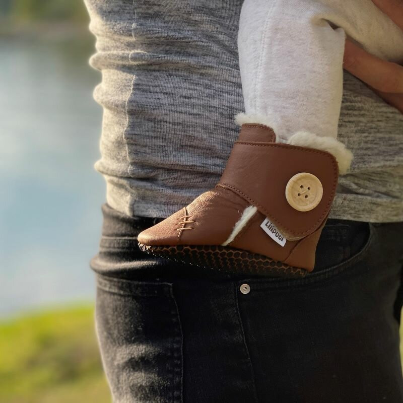 Kétféle külső talppal készülnek: a klasszikus bőrtalpas modellek puha, bababarát nappa bőrből, míg a tappancsos változatok csúszásmentes, légáteresztő talppal rendelkeznek, amely növeli a biztonságot csúszós felületeken. Mindkét változat tökéletes benti és száraz kültéri használatra, a különbség elsősorban a kopásállóságban és csúszásmentességben mutatkozik meg.