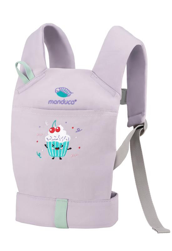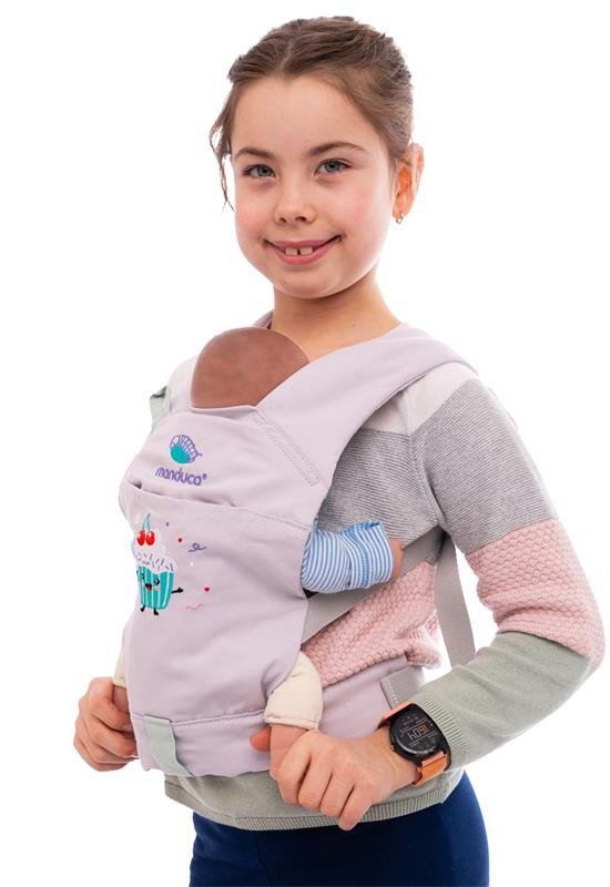 A legújabb Cupcake mintás manduca hordozó játék hordozó változata, hogy amíg a kistesót anya viszi, a nagytesó is vihesse babáját hordozóban.