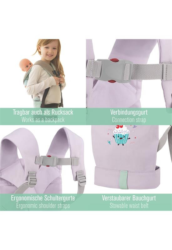 • Okos kialakítás – a játékbaba két hordozóhurokba kerül, stabilan tartva azt