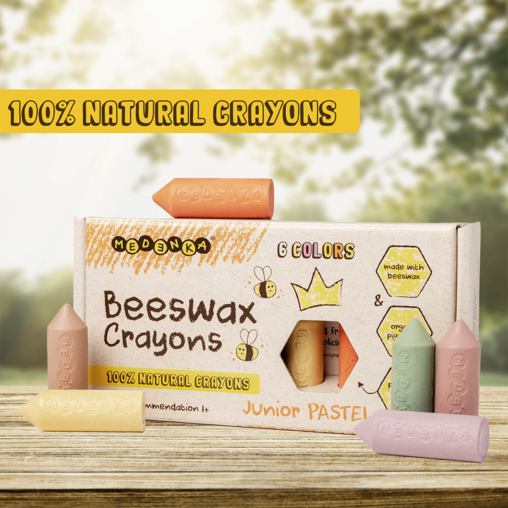 A 6 darab, kézzel készített méhviasz kréta 100% természetes összetevőkből áll: tiszta méhviaszból, növényi viaszokból és organikus pigmentekből.