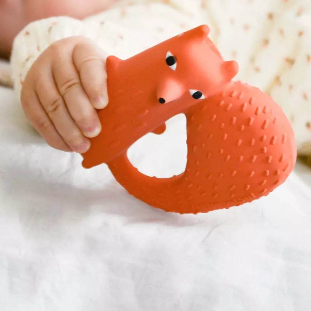 Cyril Donna Wilson első kreálmánya és egyben a legjellegzetesebb fogzáskönnyítő rágóka és fürdős játék az Oli&Carol kínálatában. Kilincs alakú, hosszú farokkal tervezték; könnyű fogni és rágni a babák számára. Számos textúrát tartalmaz, például bordázatot, így nagyon kellemesen enyhíti a fogzás okozta fájdalmakat. Ez a termék tökéletes választás fogzástkönnyítő rágókának, baba- és gyerekjátéknak, de a kádban is használható. Kézműves, fenntartható és környezetbarát eljárással készült, 100%-ban Hevea fákból származó természetes gumiból. Kézzel, természetes pigmentekkel, egyenként festett, így nincs két egyforma!