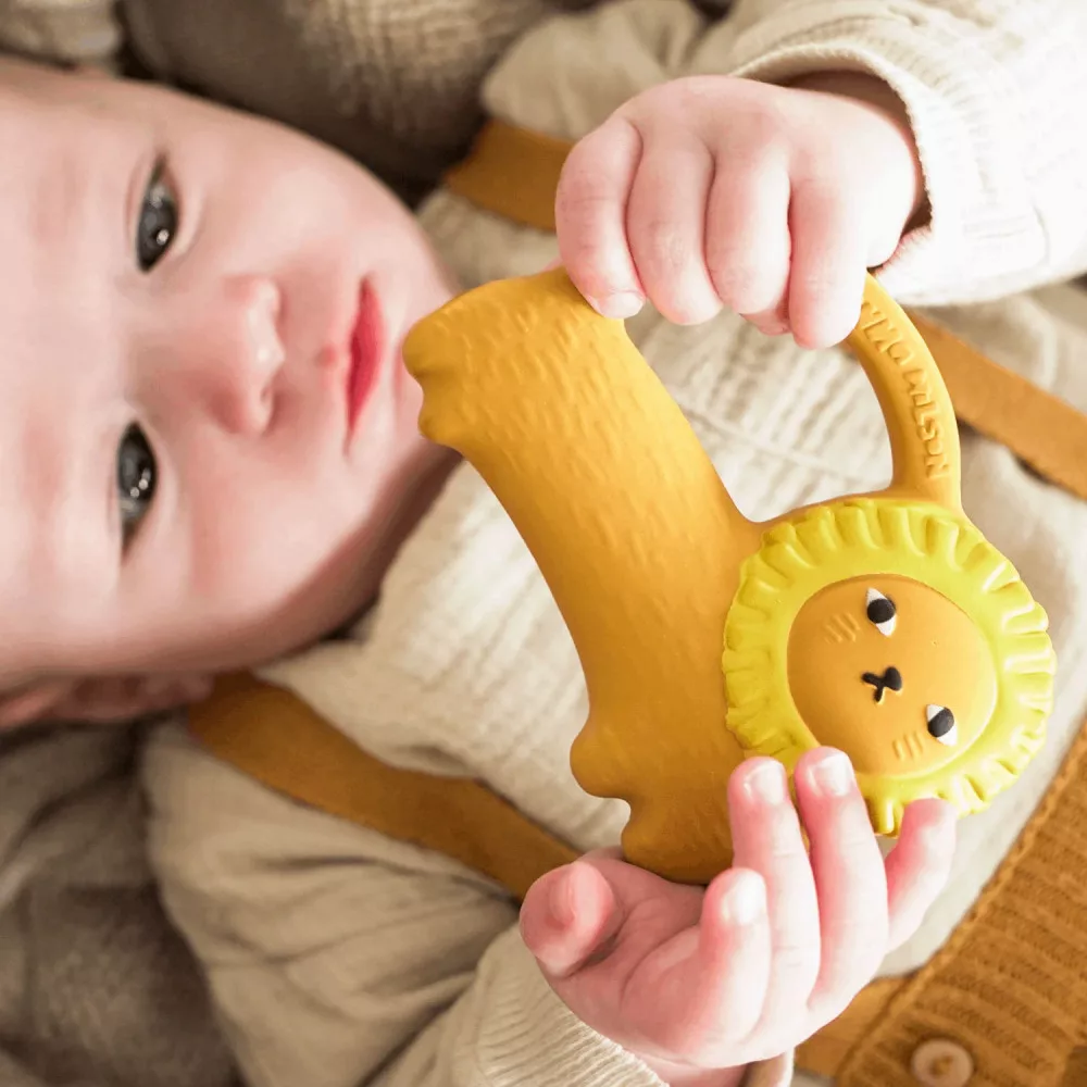A Richie, az oroszlán egy fogzáskönnyítő rágóka. Kilincs alakú,hosszú farokkal tervezték; könnyű fogni és rágni a babák számára. Számos textúrát tartalmaz, például bordázatot, így nagyon kellemesen enyhíti a fogzás okozta fájdalmakat. Ez a termék tökéletes választás fogzástkönnyítő rágókának, baba- és gyerekjátéknak, de a kádban is használható. Kézműves, fenntartható és környezetbarát eljárással készült, 100%-ban Hevea fákból származó természetes gumiból. Kézzel, természetes pigmentekkel, egyenként festett, így nincs két egyforma!