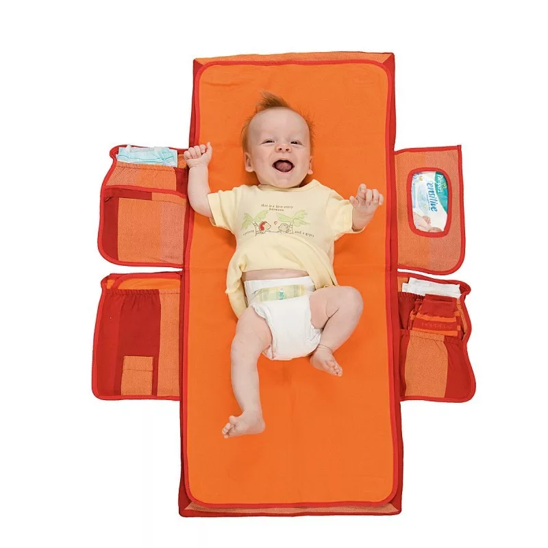 Hihetetlenül hasznos pelenkázó alátét rengeteg kicsi zsebbel.