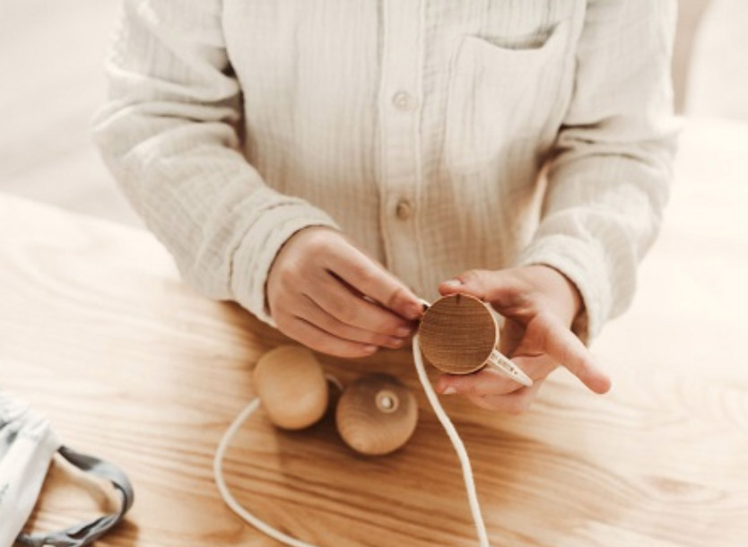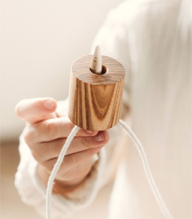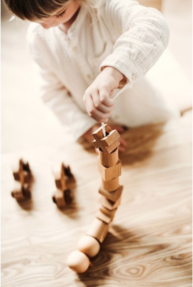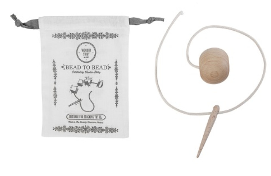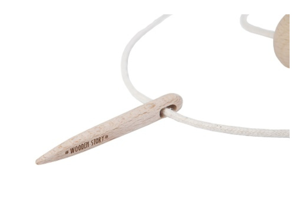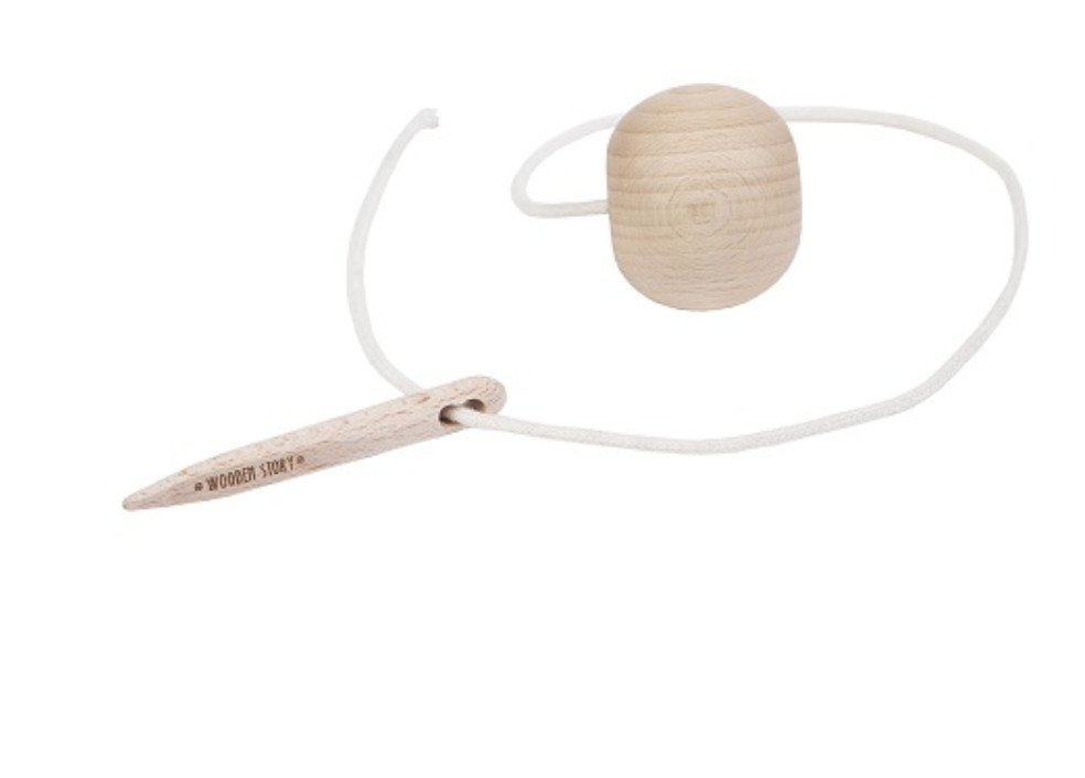 Ez a gondosan készített és kellemes tapintású fa tű alkalmas a fakockák felfűzésére egy selymes pamut zsinórra. A rakosgatós játék újra felfedezhető ezzel az eszközzel.