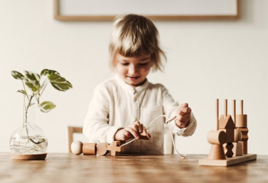 A fagolyók, gyöngyök, kockák fűzögetése fejleszti a finommotorikus képességeket, a koncentrációt, segíti a későbbi krétafogást és előkészít a későbbi tűvel való bánásmódot is.