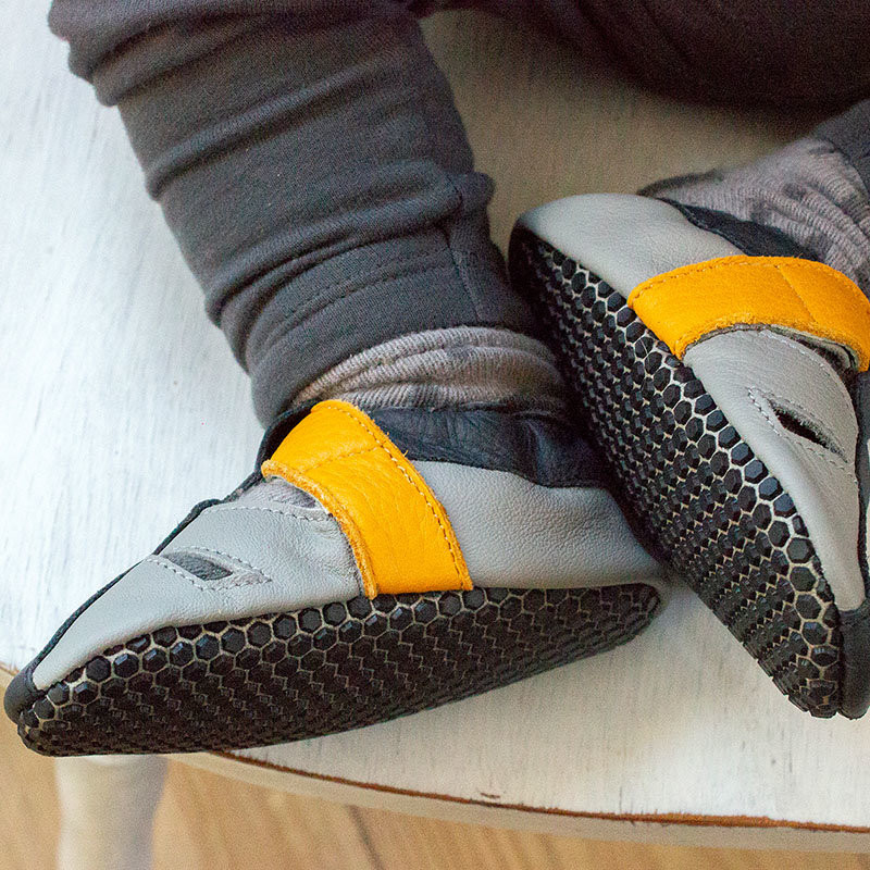 A csecsemők lába jellemzően porcos, és a csontosodás csak 2-3 éves korban fejeződik be, a boltozat pedig csak 10-12 éves korra alakul ki teljesen. Ezért nem csak a kezdeti években, hanem később is érdemes a láb természetes fejlődését támogató cipőket választani. A puhatalpú cipők mellett praktikus, ha gumitalpú cipőt is biztosítunk, amely ugyan nem követi annyira a talaj egyenetlenségeit, viszont víz- és kopásálló tulajdonságai alkalmassá teszik kültéri használatra is.